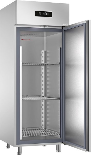 Frižider Sagi-GN2/1-AISI 304-Freezi Prime Jednodelna struktura od nerđajućeg čelika AISI 304. Jedno odeljak,GN2/1. 1 vrata. Temperaturni opseg: 0/+10°C. Kontrolna tabla sa digitalnim termometrom-termostatom. Hlađenje pomoću ventilatora sa eksternim isparivačem.Automatski odmrzavanje. Osvetljenje i brava na ključ.
